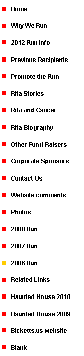 The 1st annual Run for Rita, was held October 14th, 2006 at Pasley Park in Sioux Falls, over 200 people participated in the run, many friends and family of Rita took part. The run was a great success, and a great tribute to Rita. Many people came in costume, it was a beautiful Autumn day, the kind Rita would have loved.